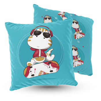 Poduszka welur dinozaur na deskorolce 40x40 cm