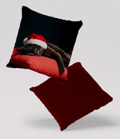 Poduszka welur pies buldog w czapce św. Mikołaja 40x40 cm